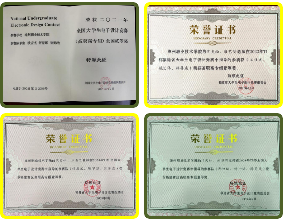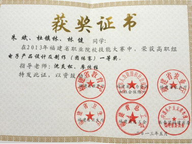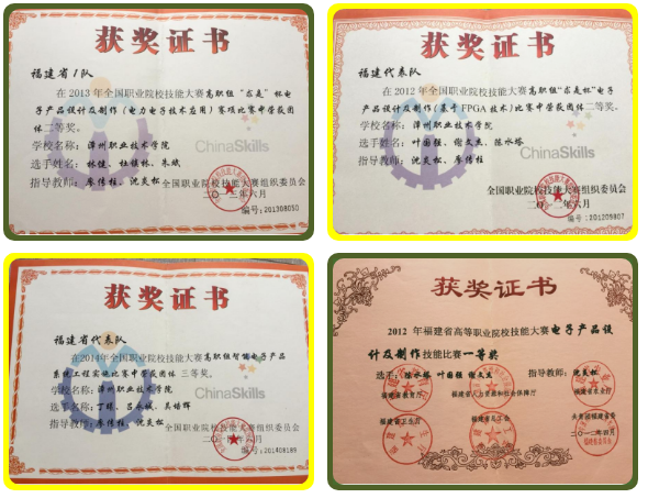 04专业特色与优势应用电子技术专业成立于1984年,是国家示范性高职院校建设项目中央财政支持重点建设专业、国家骨干专业、省重点专业、省精品专业、省示范专业。近年来在福建省高职院校专业建设质量评价中获第一名,拥有省级教学成果一等奖2项,省级精品课程5门。该专业教学团队是省级优秀教学团队,专业现有专任教师12人,其中“双师型”教师10人,有博士学位教师2人,硕士学位9人,副教授以上职称 6 人,有校级专业带头人2名,同时,聘请电子产品维修工高级、维修电工高级职业资格的企业技术人员10人。专业承担国家高技能基地等项目建设工作、省级“光电特色专业群”、“专业群实训基地建设”、“现代学徒制试点”。建有具有真实职业环境的电子产品生产实训车间,建成融教学、生产、技能鉴定、科研开发与社会服务为一体的、价值1800多万元的国家级生产性实训基地。近年来,学生参加全国职业技能大赛等各类技能大赛共获得全国一等奖1个、二等奖7个、三等奖2个,省级一等奖16个、二等奖10个。