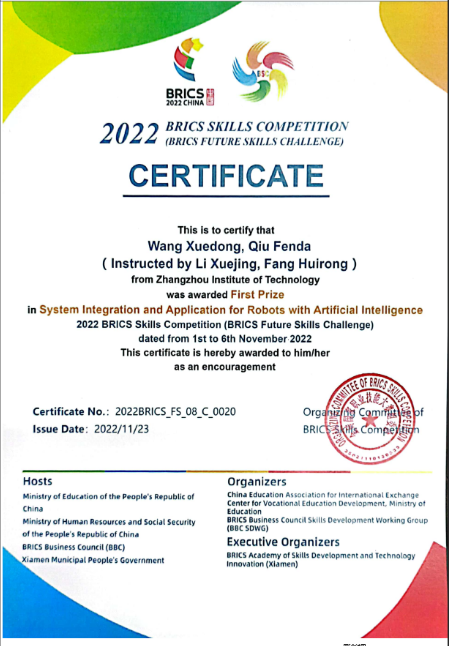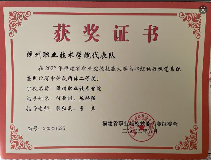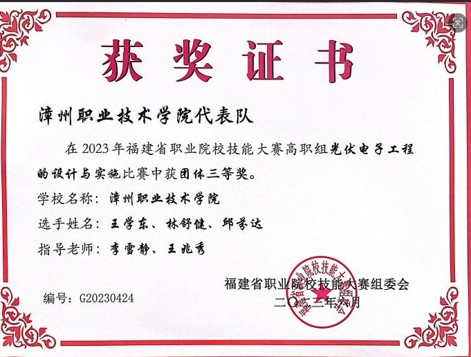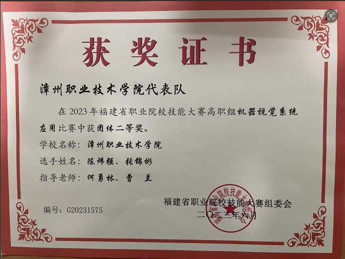 以赛促学,闪耀国赛舞台。本专业教师指导学生获得省职业技能大赛“机器视觉系统应用”赛项二等奖(2021、2022、2023年)、“光伏电子工程的设计与实施”赛项三等奖(2022、2023年)、TI杯全国大学生电子设计竞赛二等奖、2022金砖国家技能竞赛“人工智能机器人的系统集成与应用”大赛一等奖等。