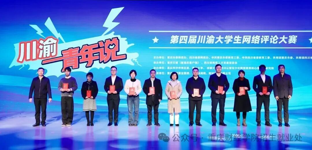 12月17日,“川渝青年说”第四届川渝大学生网络评论大赛颁奖仪式在成都大学圆满落幕。在此次大赛中,我校王艺霖、向梓豪同学合作参赛作品荣获二等奖,张誉龄、李怡娴、邹柠熠三位同学参赛作品获优秀奖,张仁洋老师获评为优秀指导教师,同时我校党委宣传部与重庆大学、西南大学等10所高校党委宣传部一同获评为“优秀组织单位”。