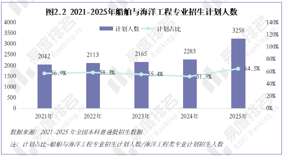 尽管智能类新专业在新增设点上占据半壁江山,但在实际招生规模上,传统专业依然是海洋工程类的主体。其占比在2025年达到高位,且该专业单年增量(975人)超过2021年该专业总规模的47%,基础盘正在加速夯实。