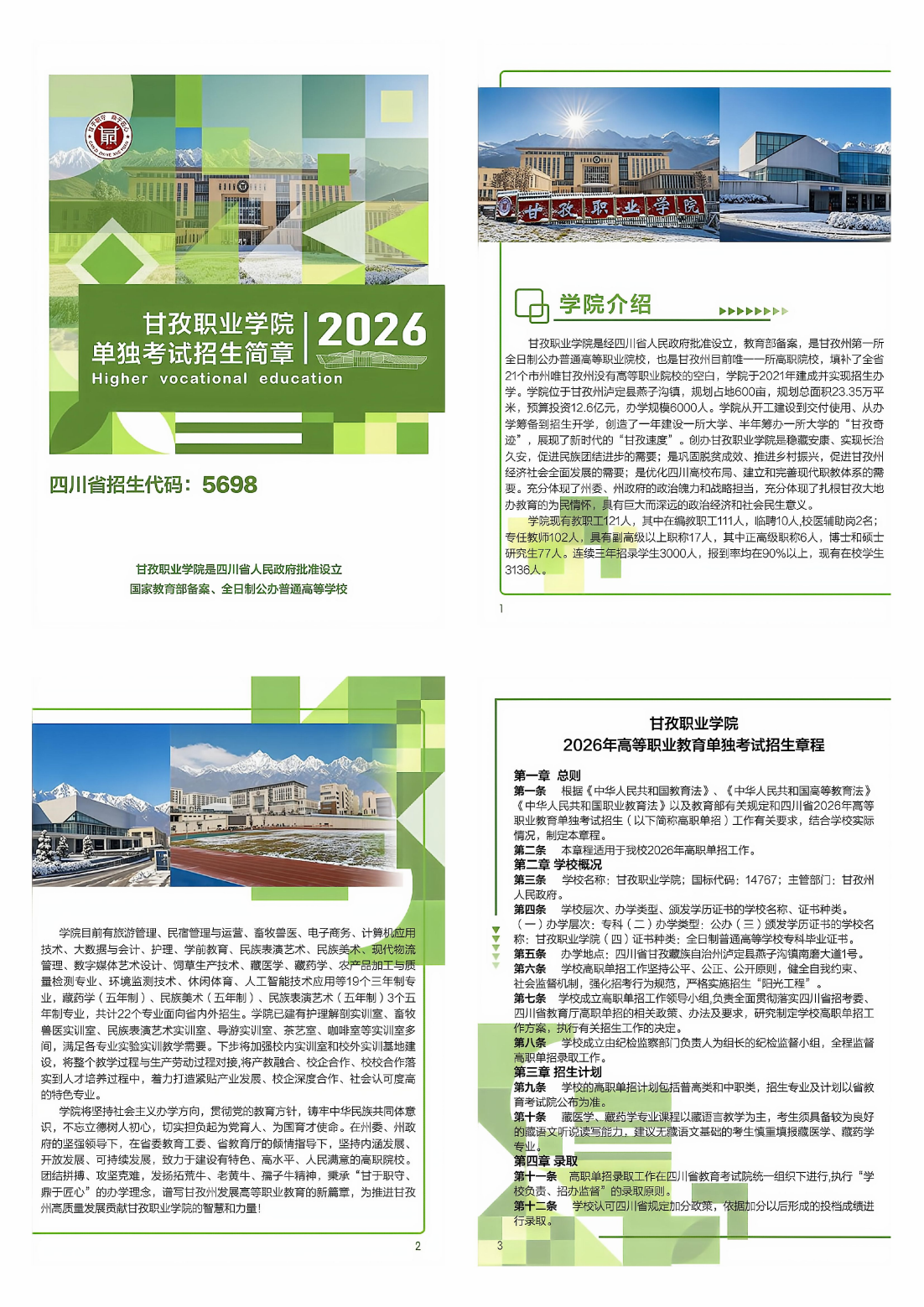 甘孜职业学院2026年高等职业教育单独考试招生简章