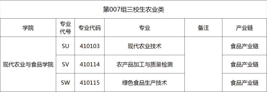 007组三校生农业类供三校生填报,高考考生号第9、10位为89,专业组内可填报专业如下: