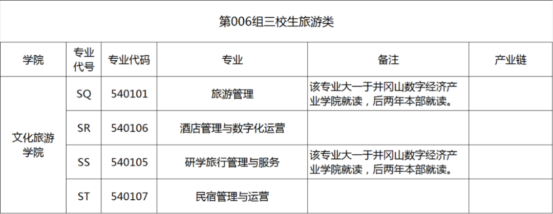 006组三校生旅游类供三校生填报,高考考生号第9、10位为89,专业组内可填报专业如下: