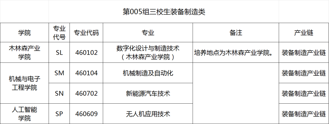 005组三校生装备制造类供三校生填报,高考考生号第9、10位为89,专业组内可填报专业如下:
