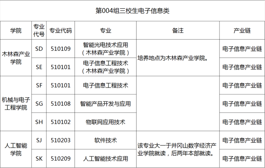 004组三校生电子信息类供三校生填报,高考考生号第9、10位为89,专业组内可填报专业如下: