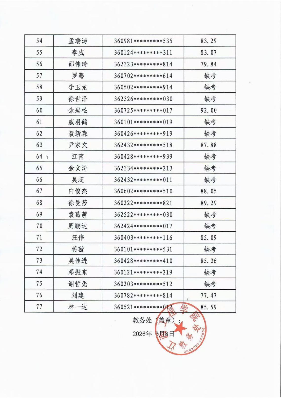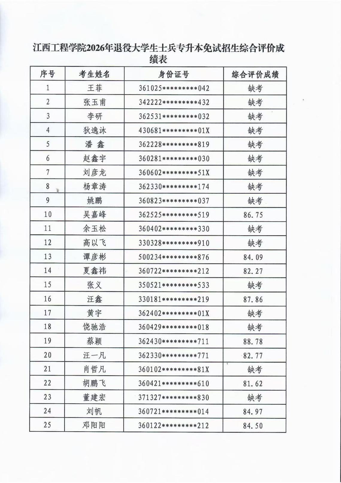 根据江西省教育厅文件精神及我校《2026年退役大学生士兵专升本免试录取考查办法》,现对2026年退役大学生士兵专升本免试招生综合评价成绩进行公示,公示时间为2026年3月8日-3月11日。