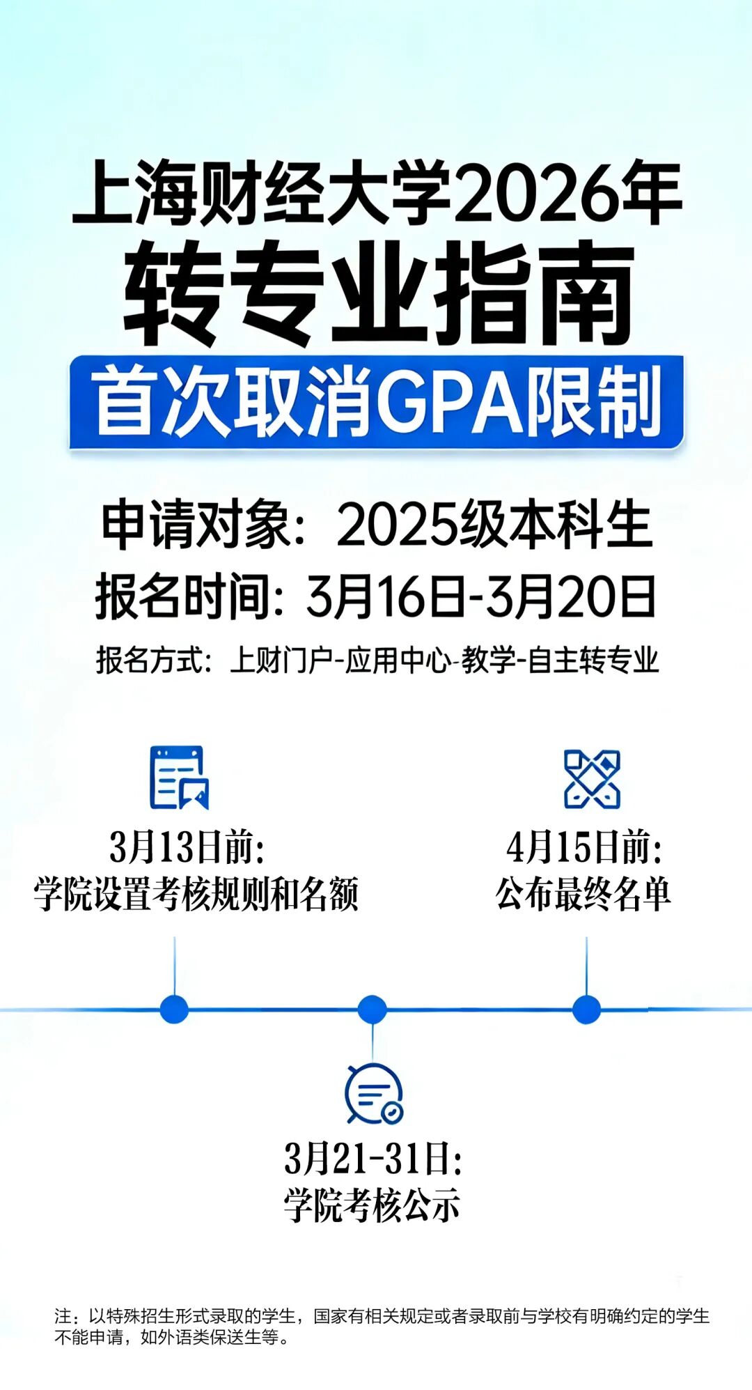 对2026届高中考生来说,这则消息一定要重点关注——上海财经大学正式发布2026年转专业指南,首次取消GPA限制,彻底放宽转专业门槛!
