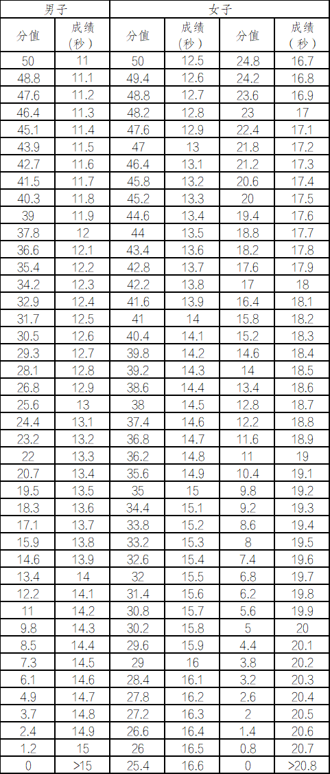 3.评分标准 100米评分标准