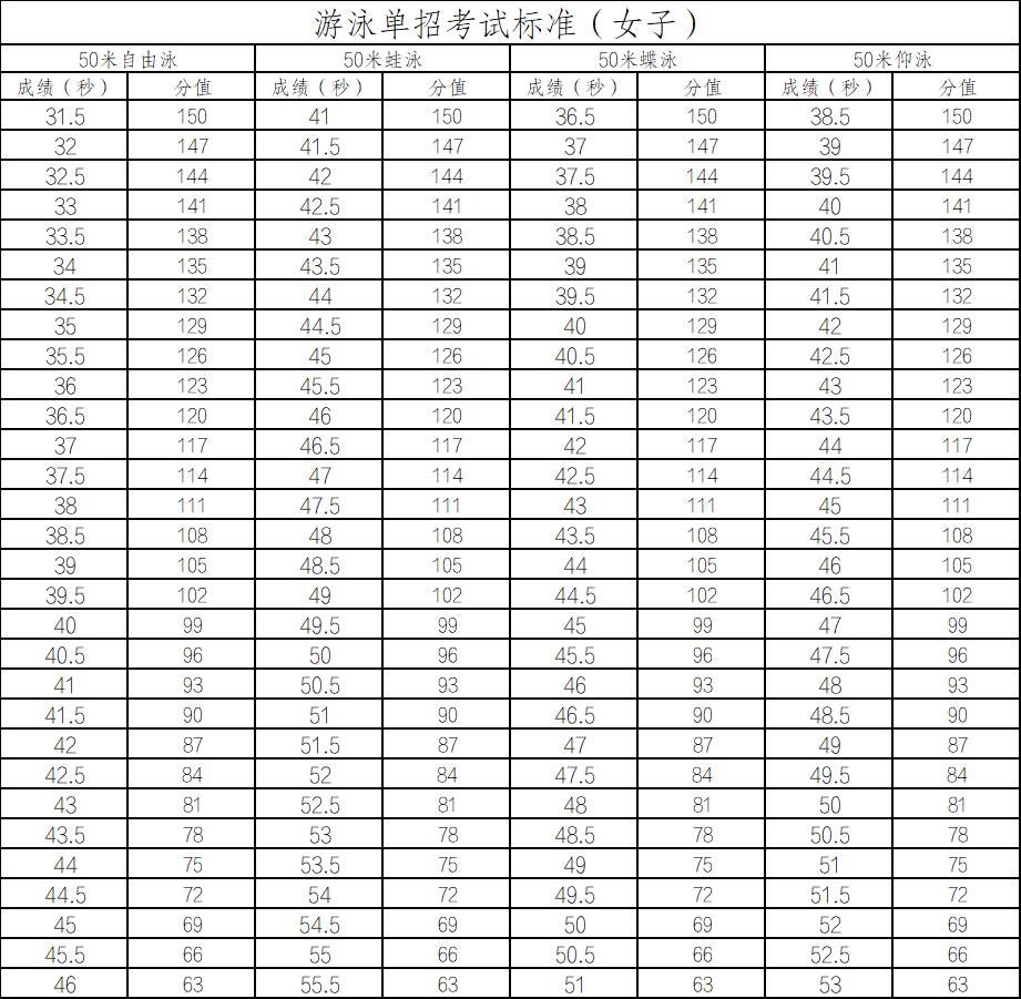 1.考试项目,50米蝶泳 仰泳 自由泳 蛙泳 考生可任选一种泳姿