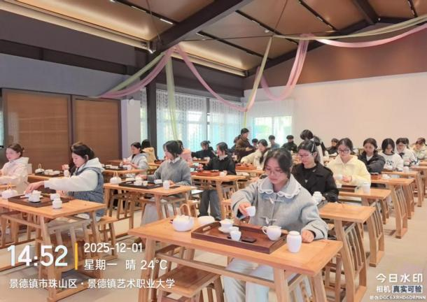 专业紧密对接区域“瓷茶一体”产业发展需求,与景德镇多家知名茶企、陶瓷工坊、陶文旅集团等建立深度校企合作,共建“产学研创”一体化平台。校内建有多场景、高还原度的专业实训室,包括综合茶艺实训室、宋代点茶法实训室、唐代煎茶法实训室、陶瓷制作实训室、茶旅情景模拟实训室及电商直播实训间等,形成“文化传承+技能实训+运营模拟+数字创新”的立体化教学环境。这些实训场所不仅支撑《茶艺基本冲泡技能》《茶席设计与茶会组织》《茶馆经营管理》等传统课程,更开设《陶瓷基础知识鉴赏》《茶文化旅游》《茶产品电商运营》等交叉课程,实现从茶艺展示、陶艺鉴赏、茶器搭配,到茶陶文旅体验设计、茶陶产品线上推广、品牌策划的全链路能力培养。
