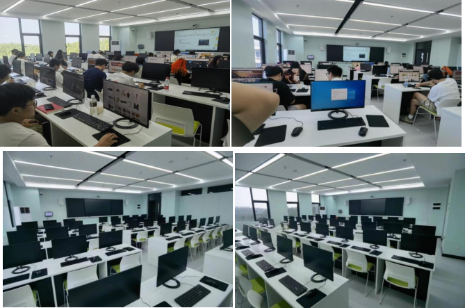 教室内配备智慧窗帘和灯光、四壁使用冲孔吸音铝板方便教学,锐取录播系统,得实多屏互动系统,可实现分组讨论。京东方数智黑板一体机,华硕I511代处理器高性能电脑,都是目前最主流和先进的教学设备。