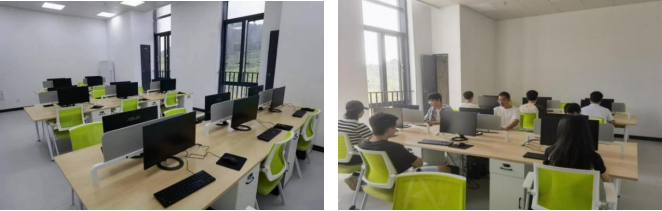 实战工作室配备设备:模拟写字楼工作环境,配备华硕I511代电脑+多媒体智慧屏幕。