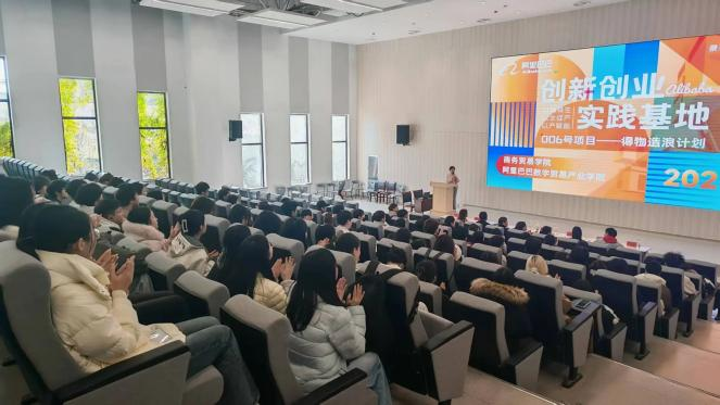 (9)阿里巴巴产教展厅:展厅建面300多平方,拥有1个中型会议室、3个中型直播间、二楼还设置了学生阅览中心,70平方商品选品间。集学生创业、商品展销、实训交流于一体,是学生实现项目沟通交流的平台,实现线上线下的销售,比如淘天、国际站、速卖通等,通过销售数据抓取和分析热门和爆款商品特征,反馈给商品设计和生产学院,指导他们制作更符合市场要求的商品。从生产到销售再助力生产,真正实现“全产业链运营”融合教学模式创新变革,打造信息流-商流-物流的全产业链项目模式。