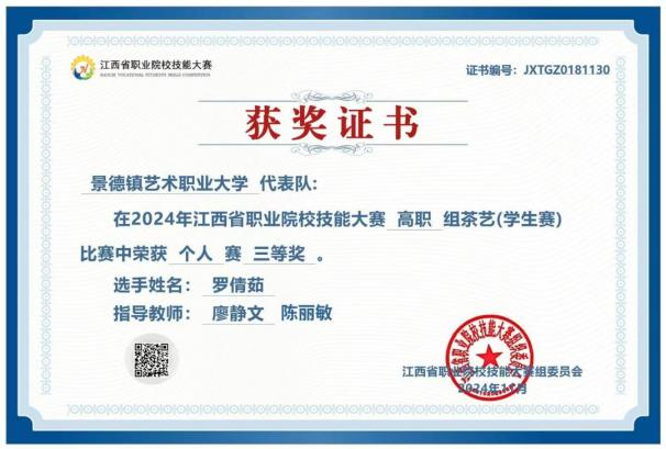 2024年江西省职业院校技能大赛(茶艺赛项)三等奖