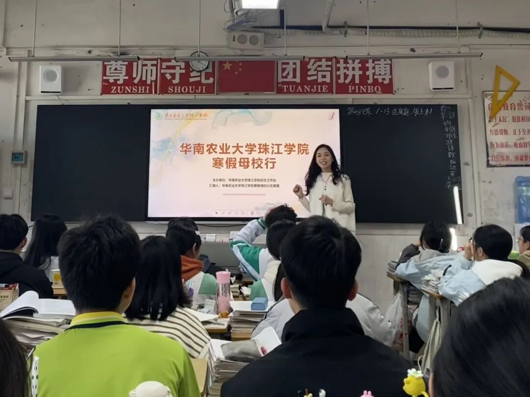 故里逢冬,薪火相传。华南农业大学珠江学院学子周嘉豪、梁海怡、麦嘉欣、赵靖欣、邱婷分别重返肇庆市高要区第一中学、肇庆市实验中学、肇庆市四会实验中学开展“寒假母校行”活动。他们怀揣着对母校的深切眷恋与分享的热忱,以进班宣讲、校园摆摊、互动答疑等多元形式,精准对接学弟学妹升学需求,全方位传递华珠办学特色与备考干货,在肇庆的校园里续写青春联结,让华珠的育人力量在故里热土温暖绽放。