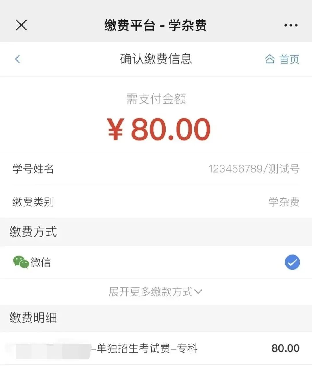 单招考试缴费标准:80元/人