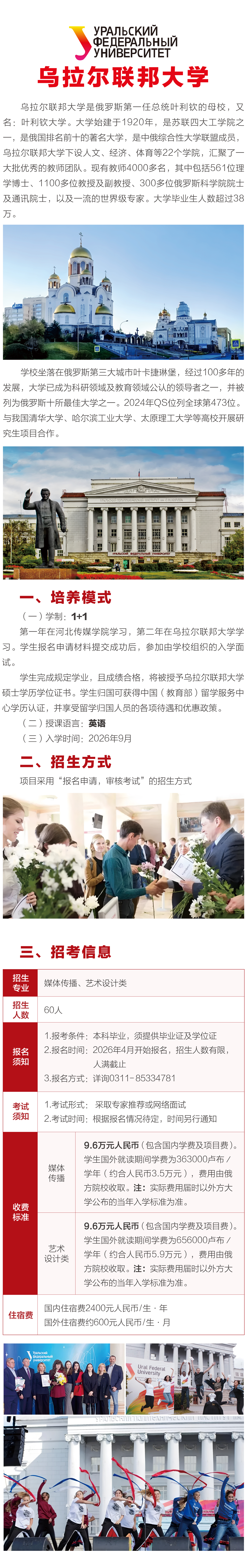 权威发布|2026年河北传媒学院·乌拉尔联邦大学 1+1国际硕士招生简章