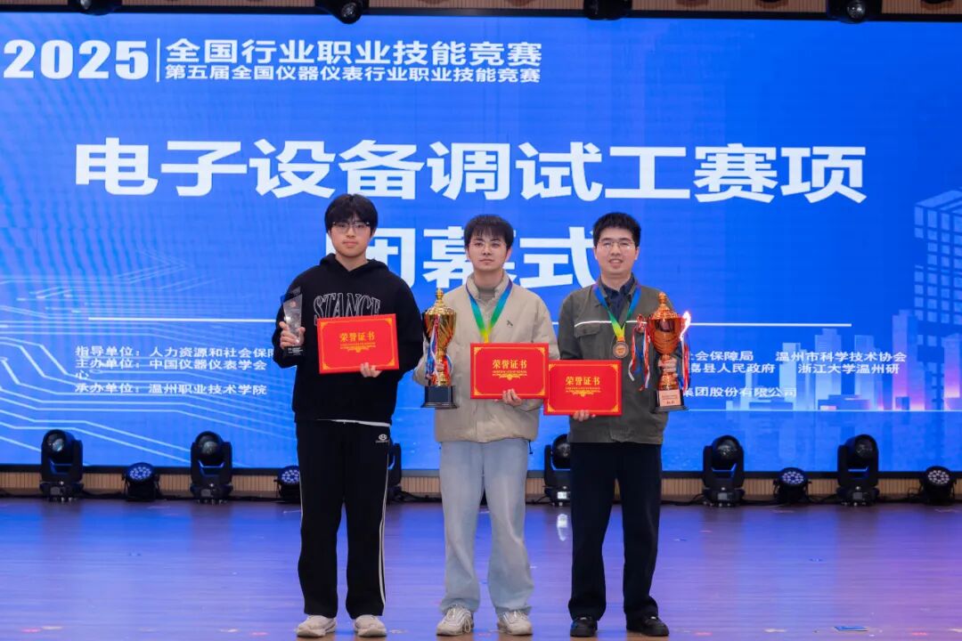 2025年全国行业职业技能竞赛暨第五届全国仪器仪表行业职业技能竞赛电子设备调试工赛项职工组一等奖2项(金奖、铜奖),学生组二等奖1项。