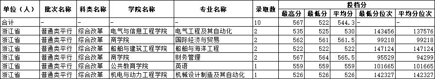 2025年浙江省招生专业录取分数情况