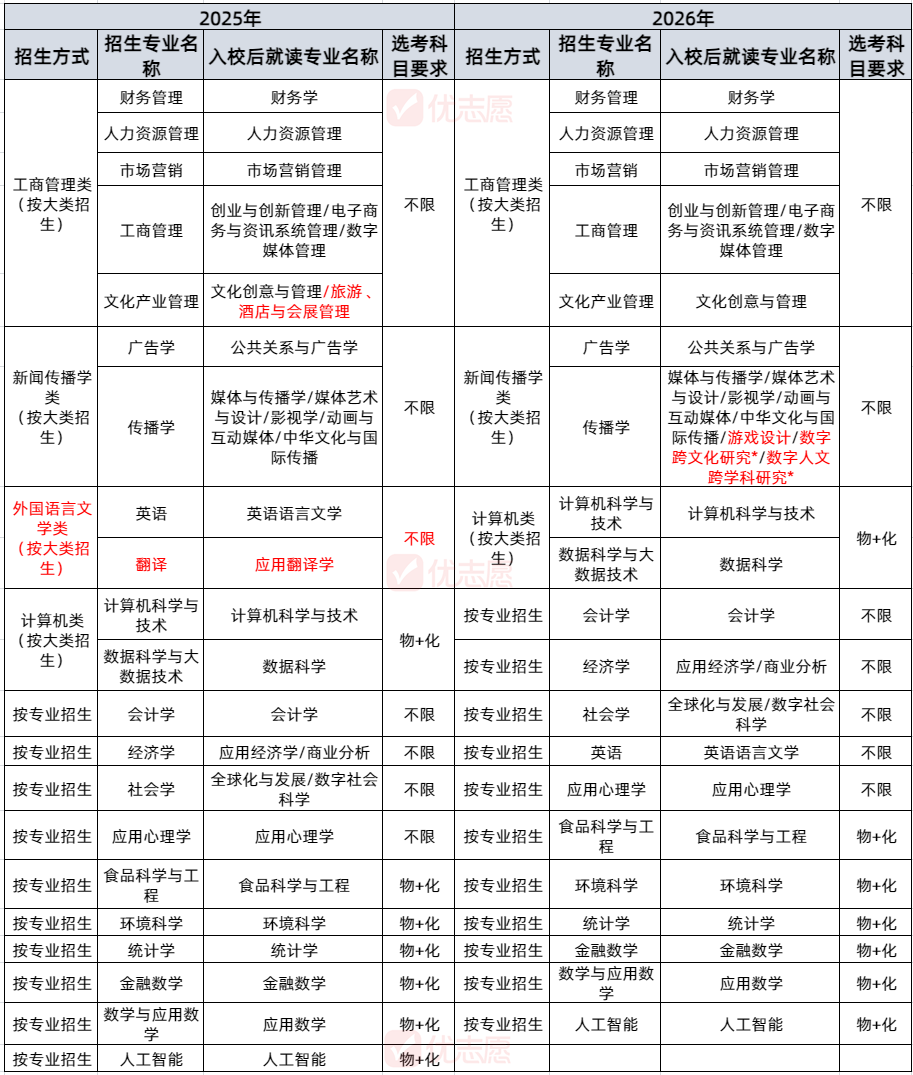 2026年北师香港浸会大学延续“大类招生+按专业招生”双轨模式,在专业设置上进行战优化,既聚焦学科特色,又紧跟数字经济发展趋势: