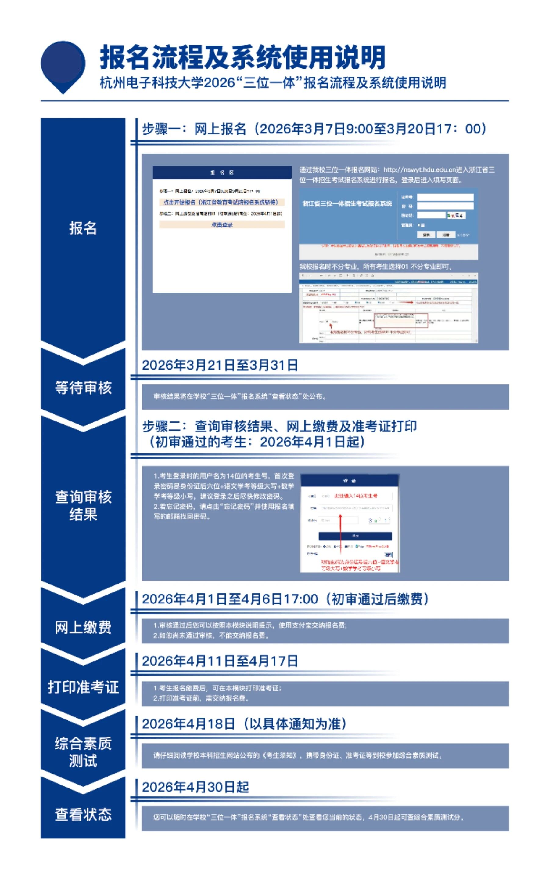 “三位一体”综合评价招生报名系统:http://nswyt.hdu.edu.cn
