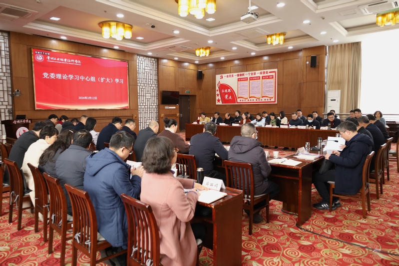 3月12日,我校组织召开党委理论学习中心组(扩大)集体学习会,专题学习习近平总书记参加江苏代表团审议时的重要讲话精神、全省组织部长会议精神等。学校党委理论学习中心组全体成员参加学习,会议由党委书记席海涛主持。