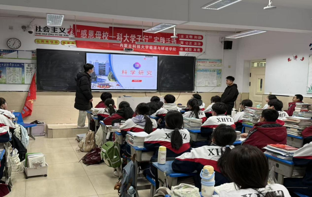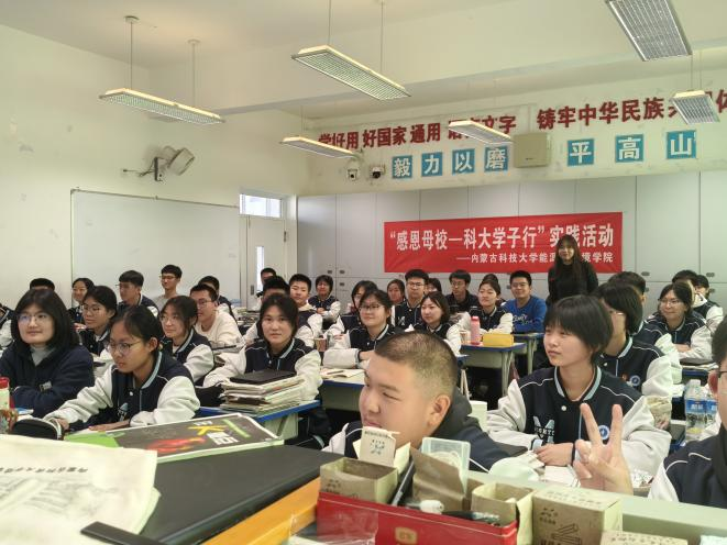 为感恩母校培育,积极响应内蒙古科技大学2026年“感恩母校—科大学子行”寒假招生宣传实践活动号召,寒假期间,我院共遴选组建8支社会实践团队,分赴各地高中母校开展招生宣讲,各团队成员以亲身经历为引,向高三学子全面介绍内蒙古科技大学的办学特色、师资力量、优势学科与报考政策,分享校园生活与专业学习体验,细致解答专业选择、就业前景等疑问,鼓励优秀学子报考内蒙古科技大学,助力他们实现理想、开启人生新征程。