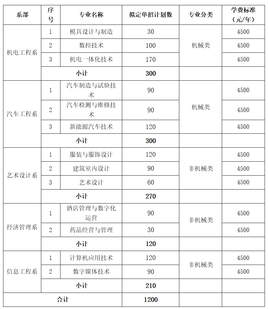 其中 A类招生对象为应届普通高中毕业考生,即考生2026年高考报名时考生类别为“应届”且具有我省2025年普通高中学业水平合格性考试语文、数学和外语科目的有效成绩;B类招生对象为应往届中职考生(含技工院校学生)、往届普通高中考生及同等学力考生(含我省2025年普通高中学业水平合格性考试科目(语文、数学和外语科目)有效成绩不全的应届普通高中考生);D类招生对象为退役军人,D类计划10人,考生可在上表专业范围内自行选择报考1-6个专业,但每个专业最多录取3人。考试结束后,以A类和B类实际参考人数为基数,按比例确定A类和B类招生计划数。