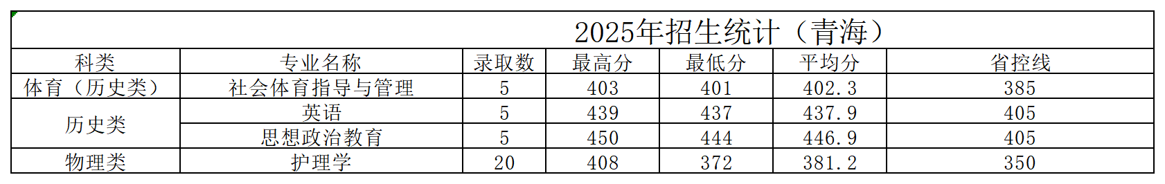 黄淮学院2025年青海省招生录取统计