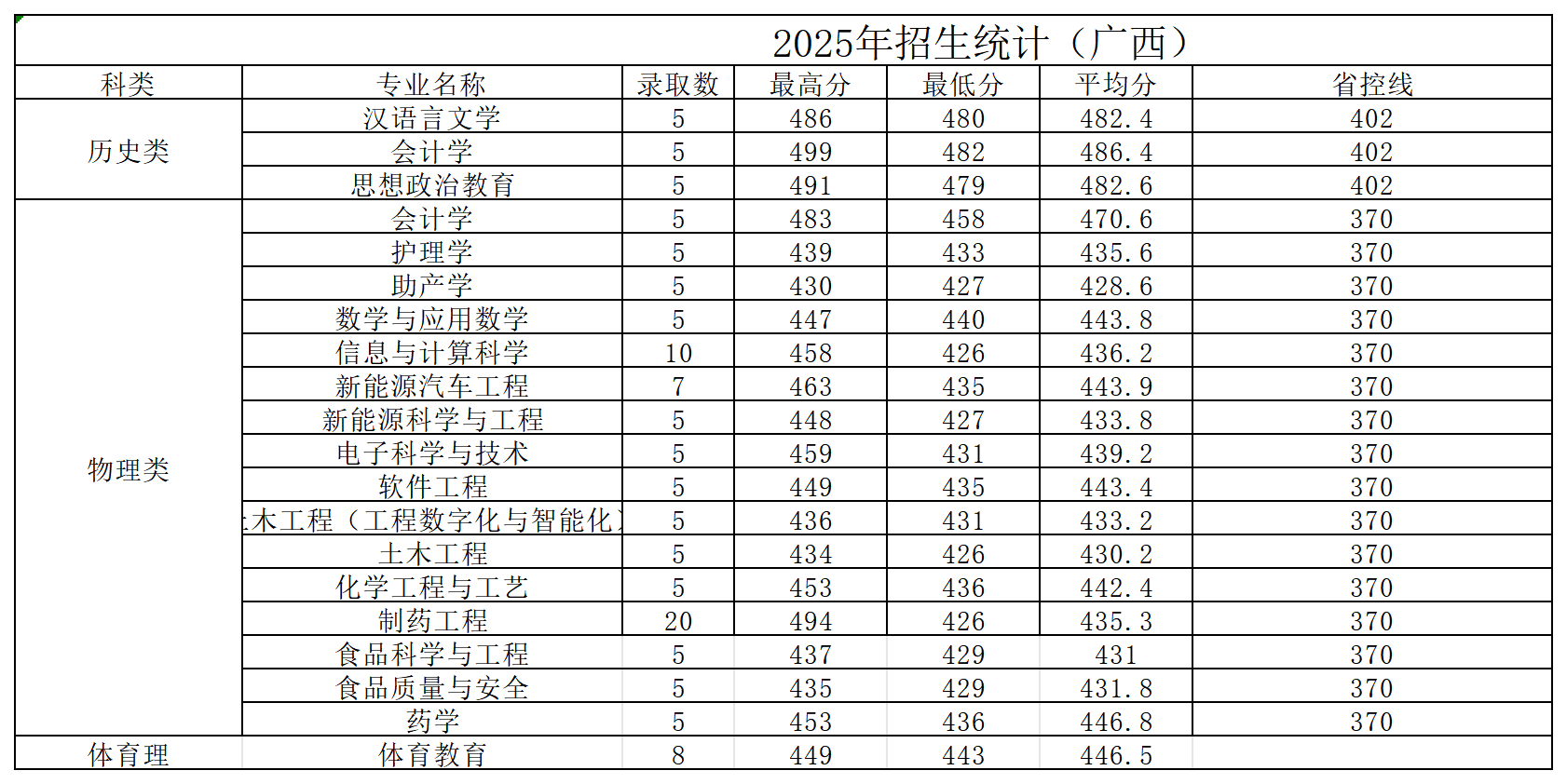 黄淮学院2025年广西省招生录取统计