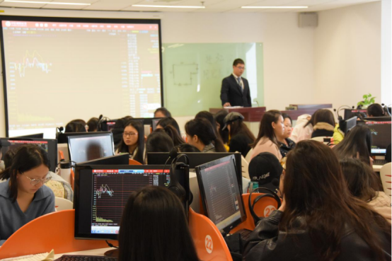 金融学专业的学生们在进行股票模拟操作的实践