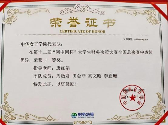 会计学专业师生参加数智化企业经营沙盘大赛获奖证书