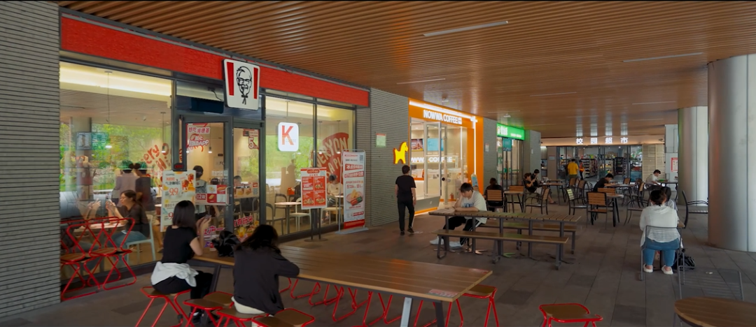 校园生活购物休闲便利,还有肯德基、益禾堂、库迪咖啡、蒙自源等品牌餐饮,校外就有两大商业街,深受师生的热捧和喜爱。