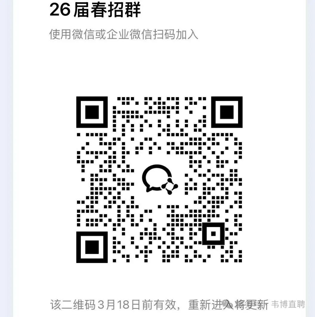 第一步:微信扫下方二维码,进入小程序【韦博校招】,完善个人信息,进入本场招聘会