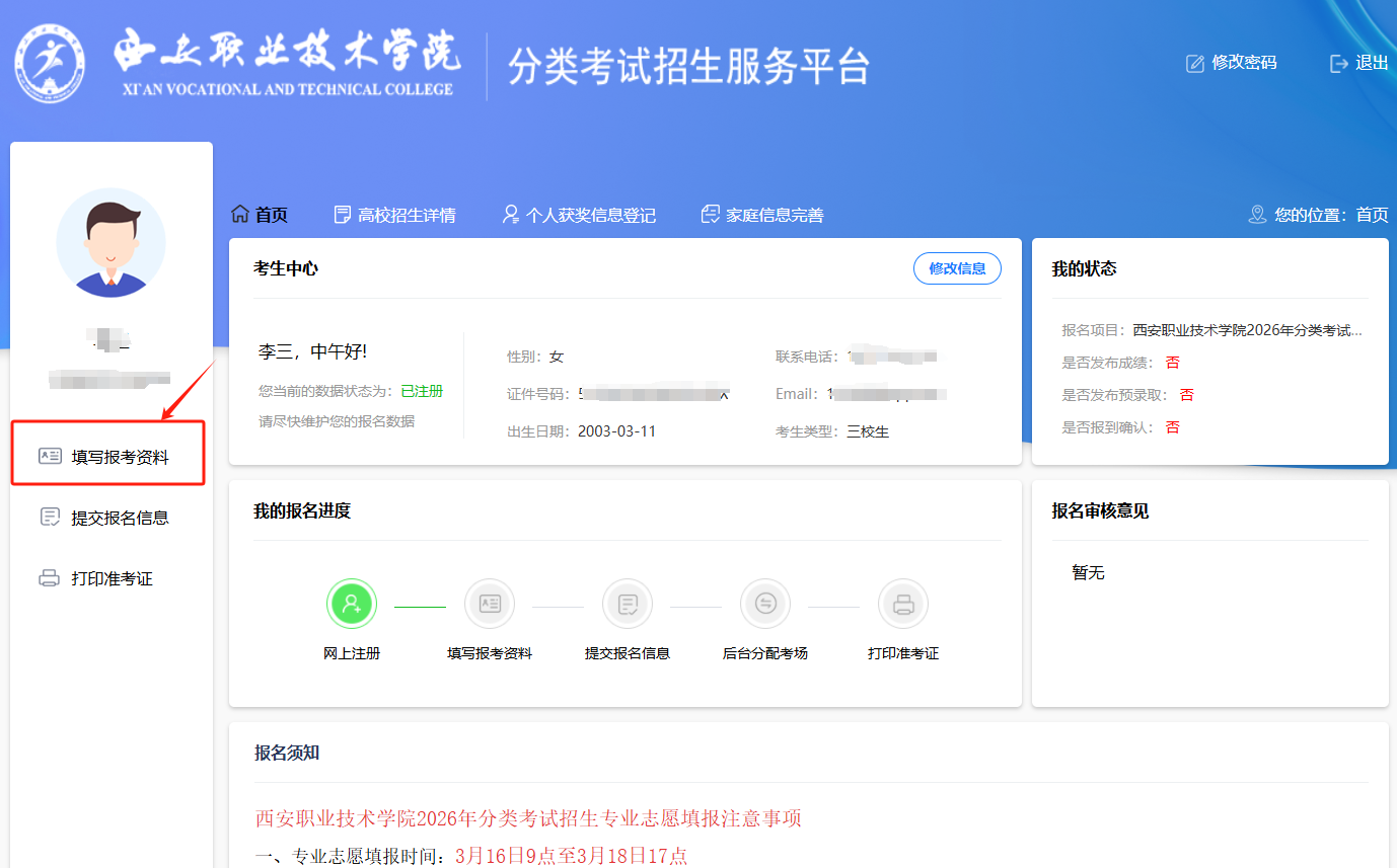 三、填写报考资料