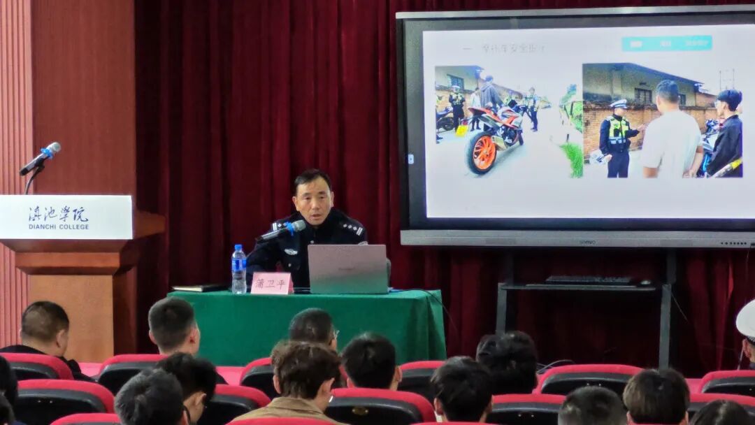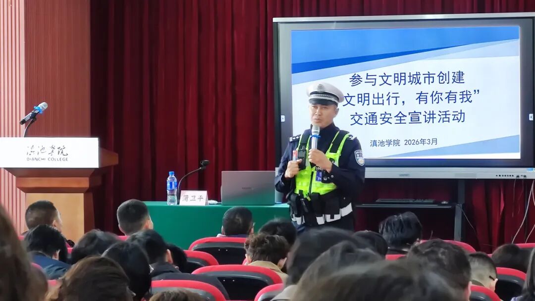 为进一步增强全体师生交通安全意识和自我防护能力,有效防范化解校园及周边道路交通安全风险,3月10日上午,滇池学院特邀昆明市交管八大队一行3人,在海埂校区举办2026年春季学期交通安全知识讲座。