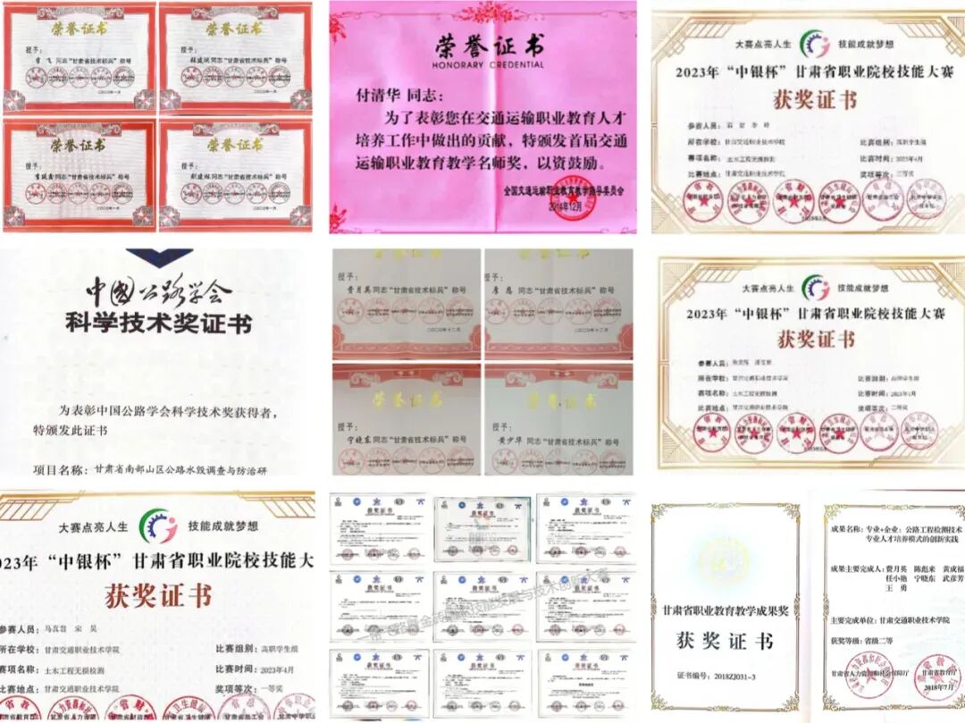 公路学院现有专业教师44人,专职实验员3人。教授8人、副教授、高级工程师等副高职称14人,“双师型”教师35人,32人获得硕士学位,2人获得博士学位。付清华教授获得首届“交通运输职业教育教学名师奖”,王运周教授、费月英教授获得“甘肃省青年教师成才奖”,7名教师获“甘肃省技术标兵”称号,1人获“甘肃省首届职业教育工匠之师”称号,2人被评为院级教学名师,9名教师被学院确定为专业带头人,多人取得注册岩土工程师、注册一级建造师、检测工程师、造价工程师等证书。聘请行业一线工程师以上职称专业技术人员57人担任校外兼职教师。在校班级42个,学生2304人。
