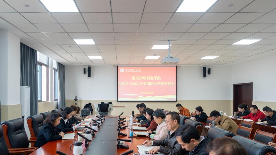 会议强调,全校上下要迅速掀起学习宣传贯彻全国两会精神热潮,把学习贯彻习近平总书记两会期间重要讲话精神与视察重庆时重要讲话重要指示精神结合起来,与学习贯彻党的二十届四中全会精神结合起来,与贯彻全国、全市教育大会精神结合起来,以高度的政治自觉把学习成果转化为推动高质量发展的强大动力。要坚持学深悟透,在把握精神实质上下功夫。深刻领会习近平总书记关于发展新质生产力、保障和改善民生的重要论述,结合国家“十五五”规划对教育强国、健康中国的战略部署,深入思考“建设什么样的护理职业院校、怎样培养新时代卫生健康人才”。要坚持对标对表,在细化落实举措上见真章。对照政府工作报告中关于“推动职业教育提质培优”“完善养老托育服务体系”“加强基层医疗卫生队伍建设”的目标任务,找准学校发展切入点,优化护理、康复、老年保健等专业布局。要坚持立德树人,在改进工作作风上求实效。以教育家精神为引领,加强师德师风建设。大力弘扬红岩精神、西迁精神、红医精神、敬老孝亲文化,将“为民造福”理念融入学生思想政治教育。坚决克服形式主义、官僚主义,营造风清气正的育人环境。