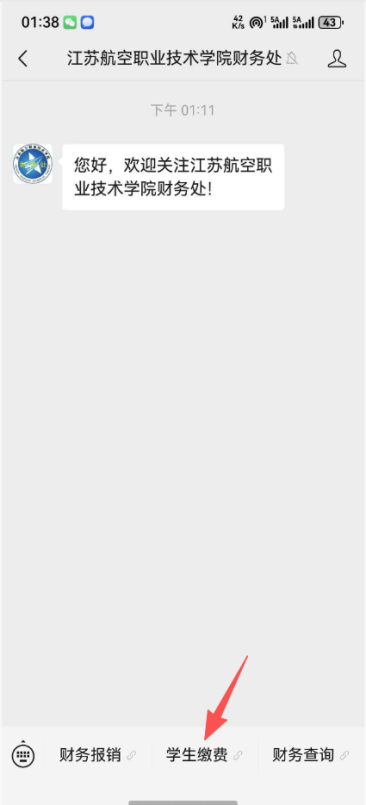 1、微信搜索江苏航空职业技术学院财务处公众号或服务号,关注公众号,点击“学生缴费”,右上角可以切换中英文,输入账号(身份证号)、密码(身份证后六位加@Jatc)、验证码登录,如果密码忘记或者不正确可以点击忘记密码修改(新密码必须包含大小写字母数字和符号)。
