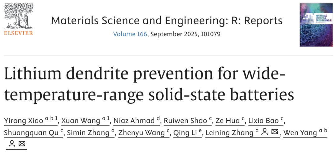相关研究成果发表于国际顶级期刊Materials Science and Engineering:R:Reports,为宽温域、高能量密度固态电池的研发提供了全新思路。