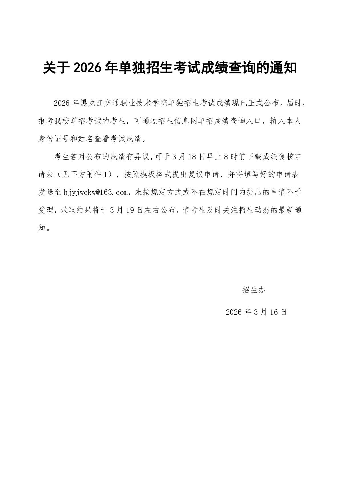 附件1-2026年黑龙江交通职业技术学院单独招生考试成绩复核申请表.docx