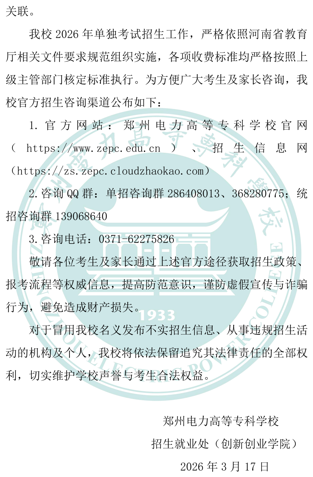 咨询电话:0371-62275826
