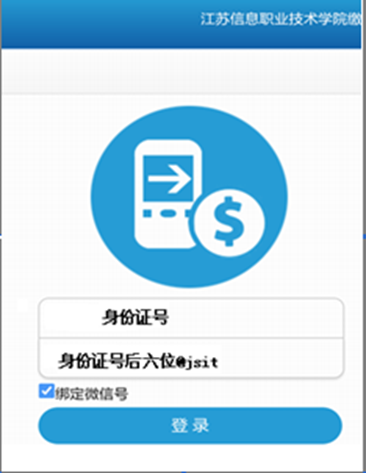 3、登录用户名为身份证号,密码为:身份证号后六位@jsit(身份证号码最后一位如为X需用大写)。