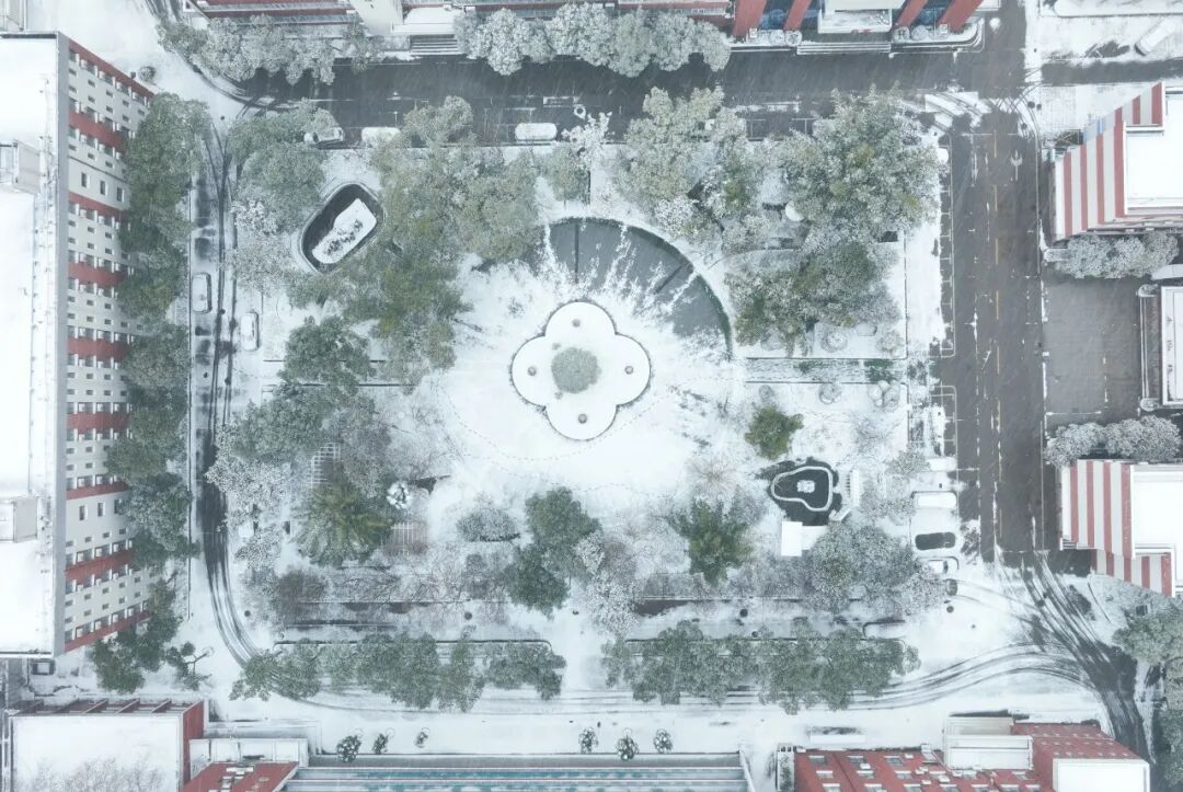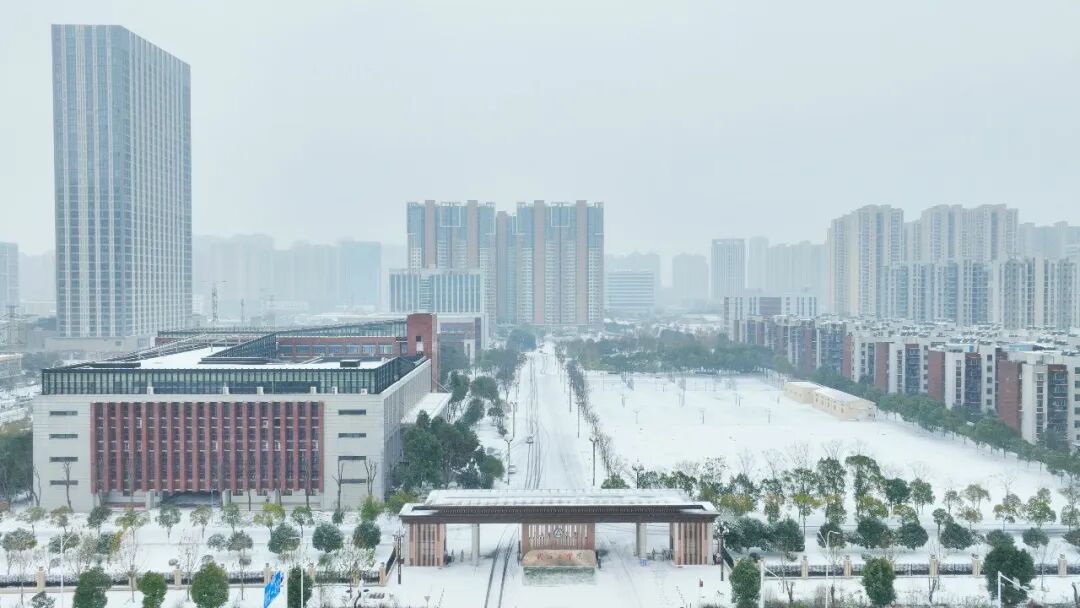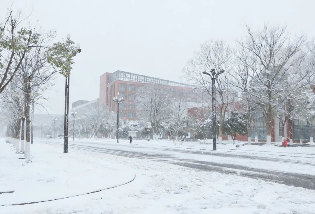 教学楼静立雪中,窗棂上结着霜花仿佛还回荡着昨日的琅琅书声图书馆楼宇挺拔,台阶覆薄雪虽学子渐疏,却似在静静沉淀知识的力量等待春暖花开时的重逢崭新的运动场被白雪铺满少了往日的热闹却多了几分静谧安然的氛围
