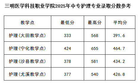 学院2025年中专部护理专业录取分数参考