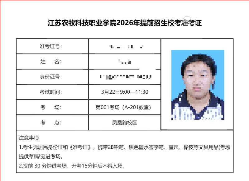 根据《省教育厅关于做好江苏省2026年高职院校提前招生改革试点工作的通知》(苏教考函〔2026〕1号)及《江苏农牧科技职业学院2026年提前招生简章》的相关要求,现将我校提前招生考试的相关事项做如下提醒: