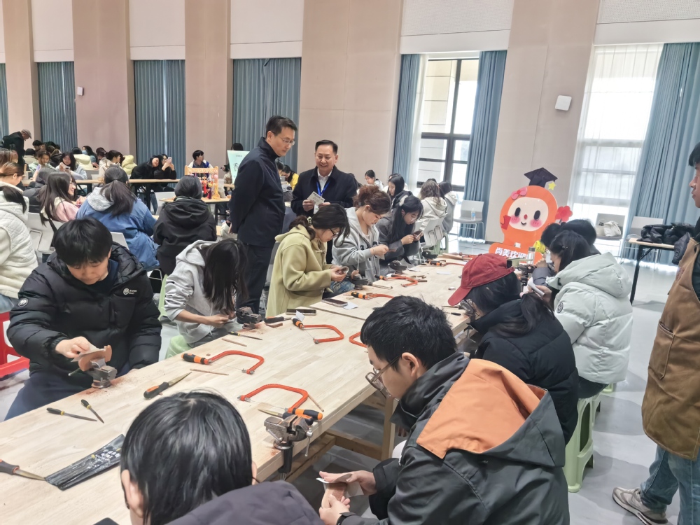 风华两载,非遗留韵。尚美书院在风华楼小报告厅举办非遗文化体验活动,精心设置了剪纸、香包、艾草锤、微景观、面塑、木梳六大体验区,吸引众多同学沉浸式感受传统文化魅力。非遗传承人采用“讲解+演示+实操”相结合的形式,带领学生深入体验非遗之美。同学们亲手缝制香包、打磨木梳、制作微景观,在指尖的流转中触摸匠心之韵,让传统的技艺与青春的灵感在碰撞中迸发出别样的火花。