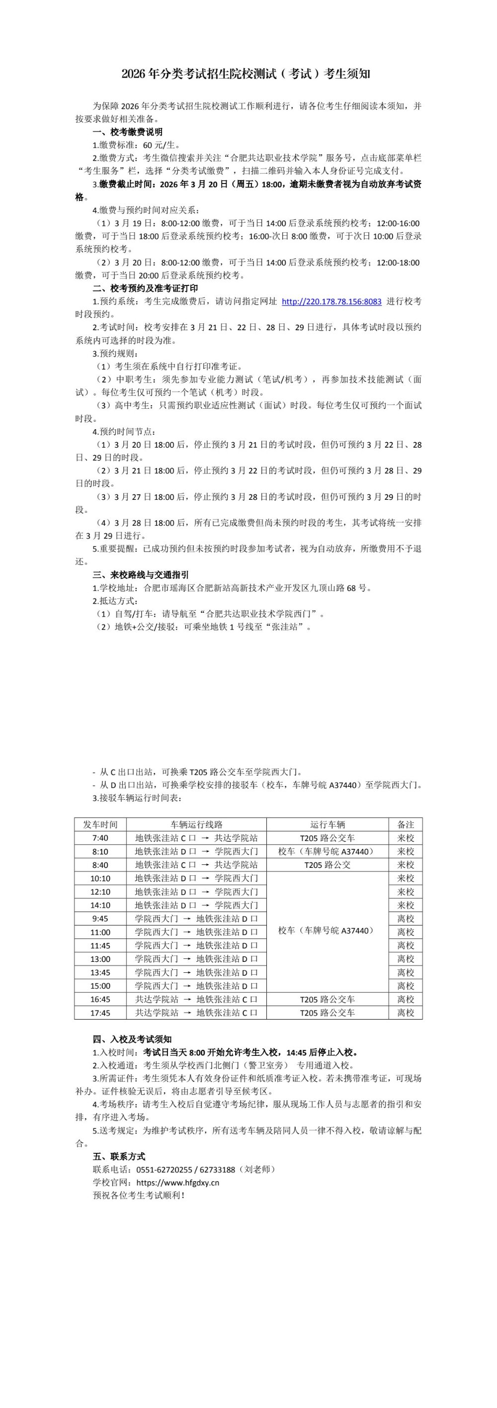 2026年分类考试招生院校测试(考试)考生须知
