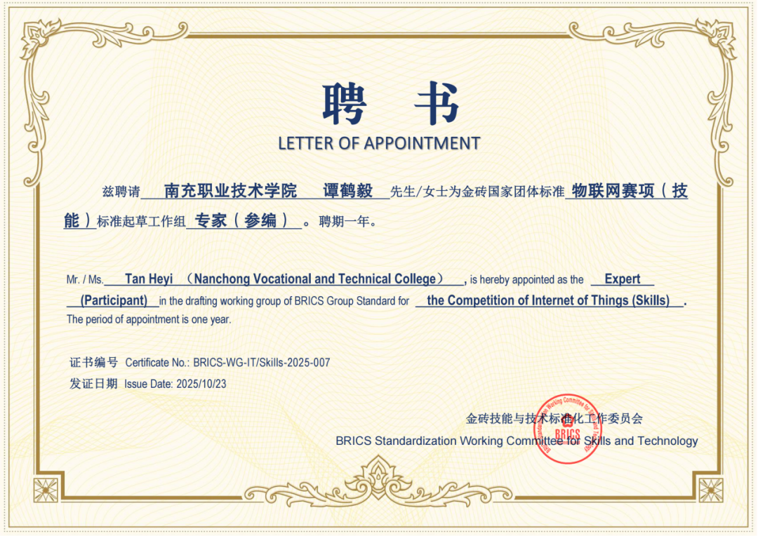 语言架桥通世界,职教出海显担当。我校课题成功斩获教育部“语言服务职教出海”立项,编制金砖国家物联网国际标准正式发布,以硬核成果助力职教出海。2025年,迎来7国49名留学生,他们活跃在“川超”赛场,闪耀于各类文化交流活动,成为中外友好的鲜活纽带。亚巴理工学院代表团慕名来访,为“一带一路”职业教育交流,架起坚实桥梁,校际合作从单向互动迈向双向赋能。