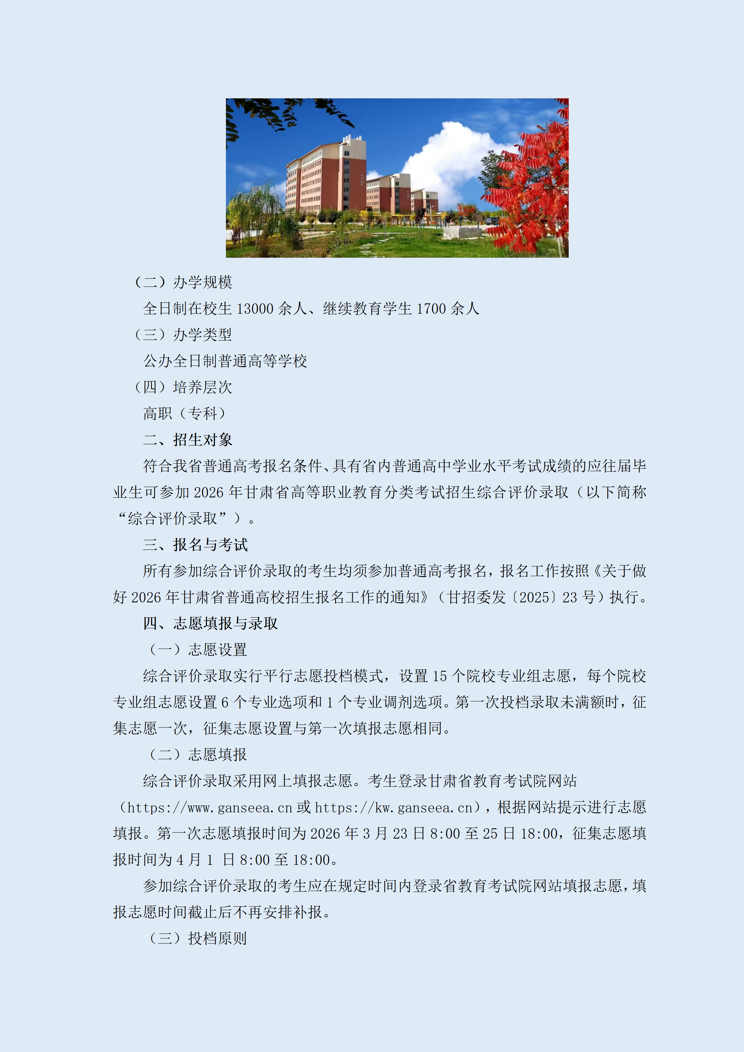 甘肃卫生职业学院2026年普通高中生综合评价录取招生简章